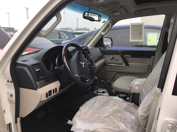 2018款三菱帕杰罗经典V97 ,3.8L/V6 性能及操控配置:184千瓦 250匹马力 329 N-m(2750rpm) 五速手自一体变速箱 三菱第二代超选四驱(2H 4H 4HLc 4LLc低速直接切换) 巡航定速 中后双差速锁 后差带锁止 发动机防盗 机油散热器外观配置:18轮 后挂备胎LED日行灯 氙气大灯带大灯清洗 前雾灯全景狩猎式电动天窗 镀铬后视镜带转向灯 自动折叠 后视镜下小射灯 侧位航空脚踏黑色顶部行李架 玻璃天线升油箱 内部配置:七座 真皮座椅 桃木内饰 桃木多功能方向盘(带电话连接按钮) 车载小屏(显示数字时钟、油耗、气温、气压、海拔、指南针等功能)12声道北美莱福音响影音系统主副座椅电动调节 车载小冰箱 四方位倒车雷达 带引导线倒影系统 智能空调(后排调节按钮)折叠遥控钥匙 AUX功能预留 USB接口 原装千斤顶和工具包 黄金色三菱车标。